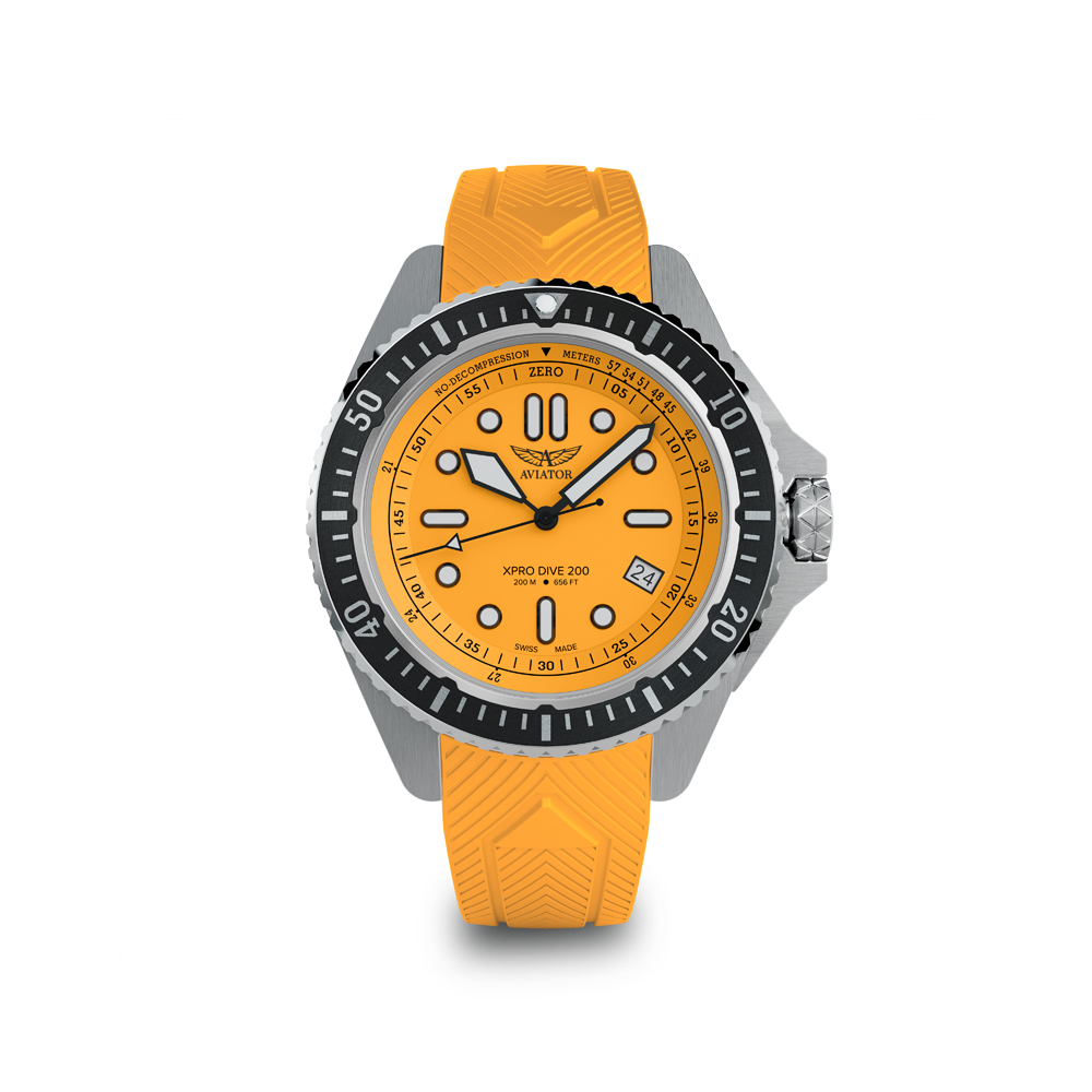 Το Aviator XPRO Dive 200 είναι ένα ρολόι-εργαλείο, σχεδιασμένο να αποδίδει σε δύο περιβάλλοντα – στον αέρα και κάτω από το νερό. Ανθεκτικό, αλλά κομψό, ταιριάζει σε μία ζωή γεμάτη περιπέτεια – από τα βάθη του ωκεανού έως τα ορεινά μονοπάτια και από το πιλοτήριο έως τις αποδράσεις για θαλάσσια σπορ. Κάτι παραπάνω από ένα εξελιγμένο κλασικό καδυτικό ρολόι, το Aviator XPRO Dive 2000 είναι μία νέα γενιά ρολογιών η οποία γεφυρώνει τον κόσμο της θάλασσας με τον κόσμο του ουρανού