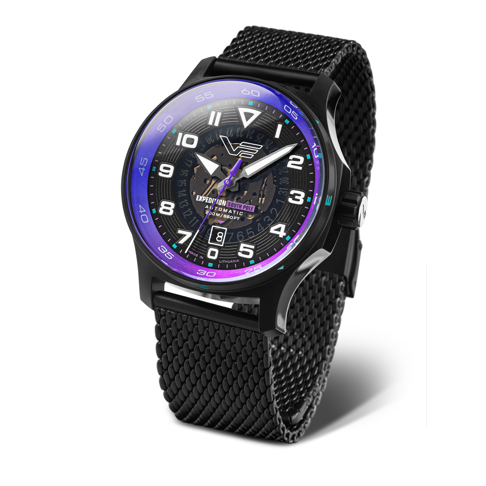 Το ρολόι Vostok-Europe Expedition South Pole Automatic YN55-592C760 έχει εξοπλιστεί με καντράν με άνοιγμα στο κέντρο το οποίο επιτρέπει στον χρήστη να παρατηρεί την κίνηση του αυτόματου Ιαπωνικού μηχανισμού