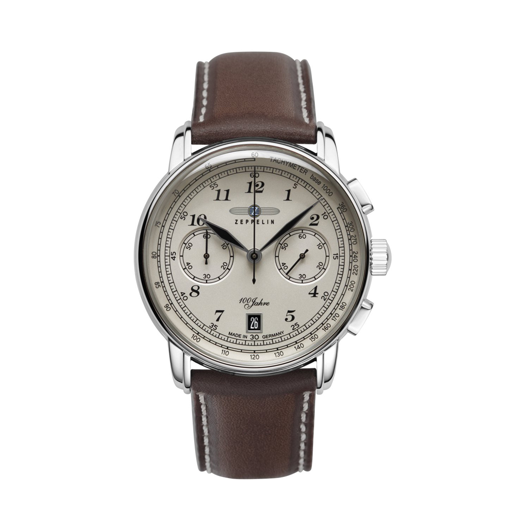 Ανδρικός χρονογράφος Zeppelin με μπεζ καντράν και δερμάτινο λουρί