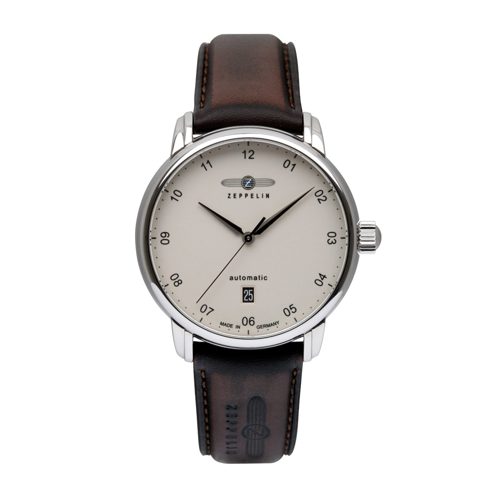 Ανδρικό αυτόματο ρολόι Zeppelin με ημερομηνία και δερμάτινο λουρί