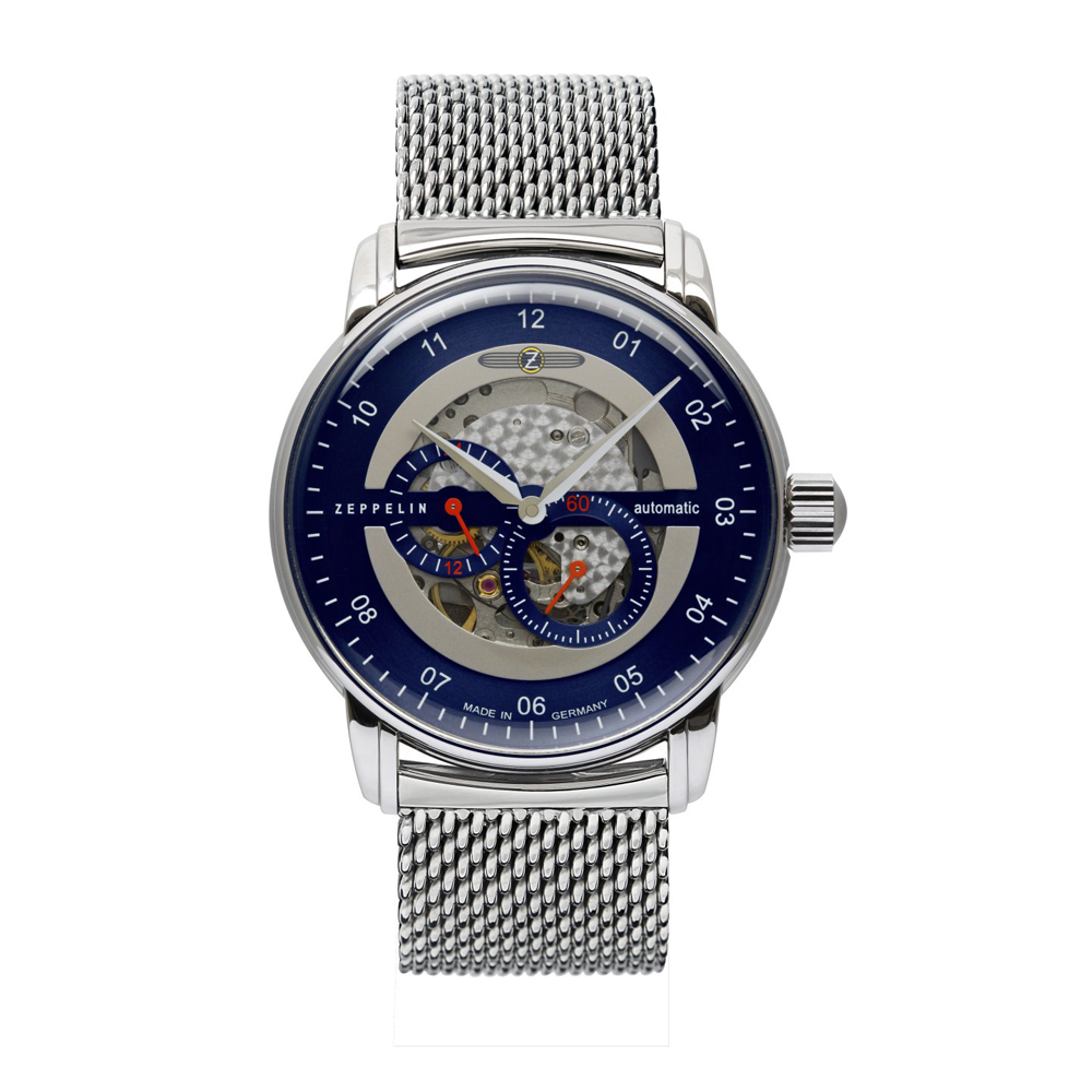 Ανδρικό αυτόματο ρολόι Zeppelin με skeleton καντράν και μεταλλικό bracelet