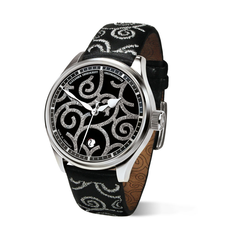 This automatic Alexander Shorokhoff Arabian Pearls watch is also available with a stingray leather strap, a stainless steel folding clasp or a high quality stainless steel Milanese bracelet at additional cost. Upon request also available with a diamond bezel on case