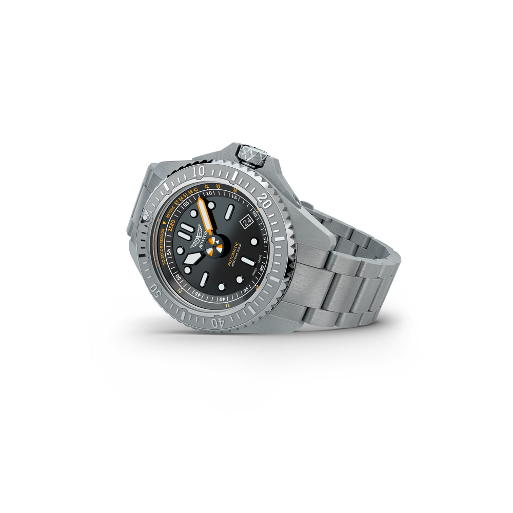 The Aviator XPRO Dive Breather 300 Auto is a dual-environment tool watch built to excel in two worlds. Powered by a precision automatic Swiss movement, it delivers reliability you can trust in any environment. The integrated breathing disc — inspired by the Navy SEALs’ box breathing technique — guides steady breathing cycles and confirms at a glance that the watch is running, even in the depths. Rugged yet refined, it fits effortlessly into a life of adventure — from ocean dives to mountain trails, from cockpit flights to sea sport escapes