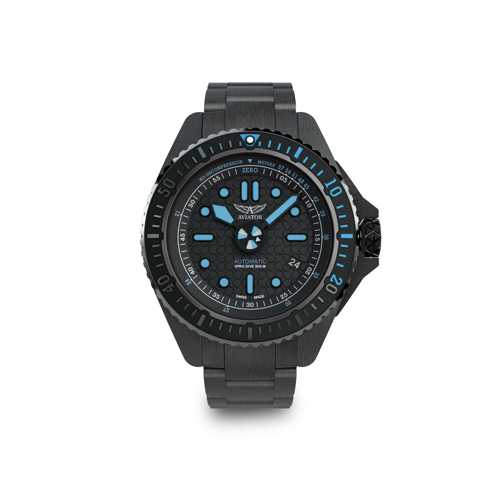 The Aviator XPRO Dive Breather 300 Auto is a dual-environment tool watch built to excel in two worlds. Powered by a precision automatic Swiss movement, it delivers reliability you can trust in any environment. The integrated breathing disc — inspired by the Navy SEALs’ box breathing technique — guides steady breathing cycles and confirms at a glance that the watch is running, even in the depths. Rugged yet refined, it fits effortlessly into a life of adventure — from ocean dives to mountain trails, from cockpit flights to sea sport escapes