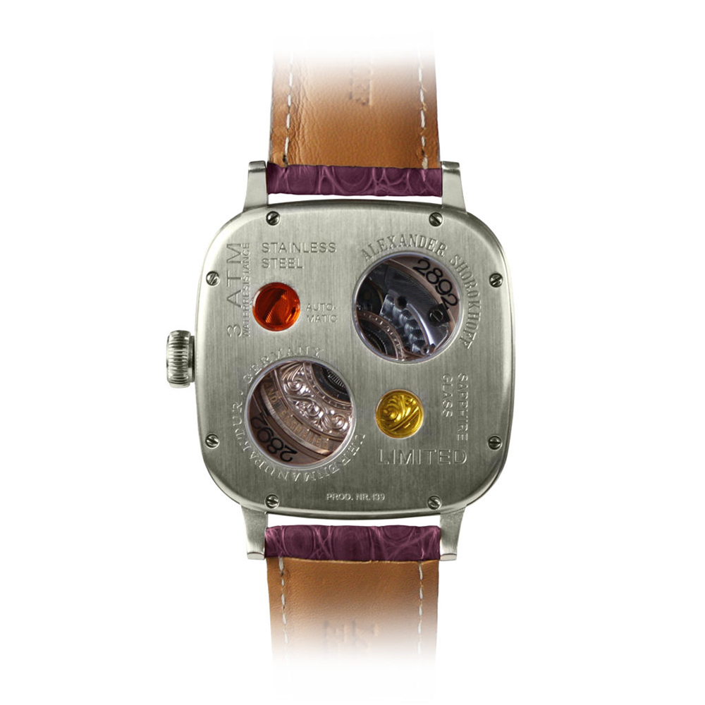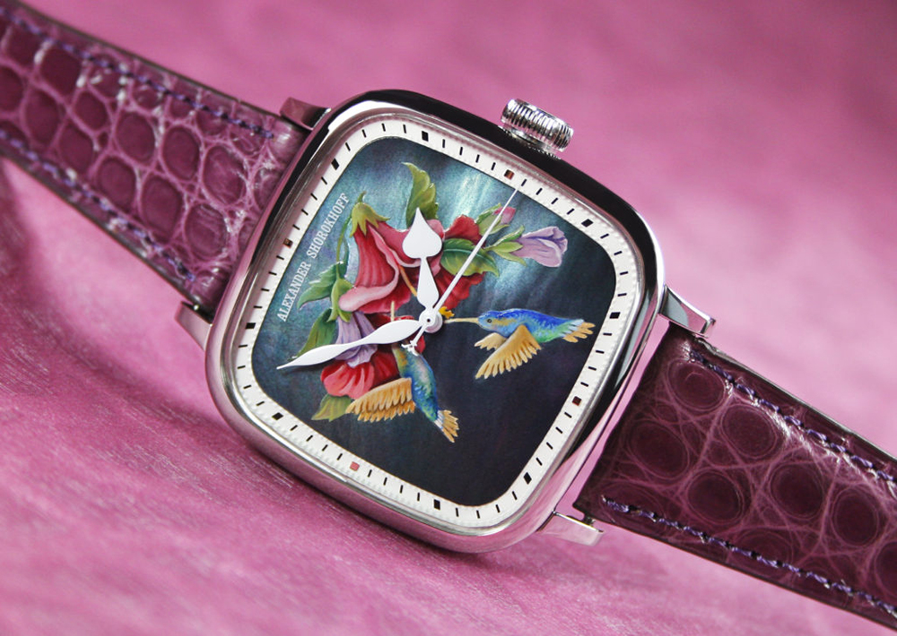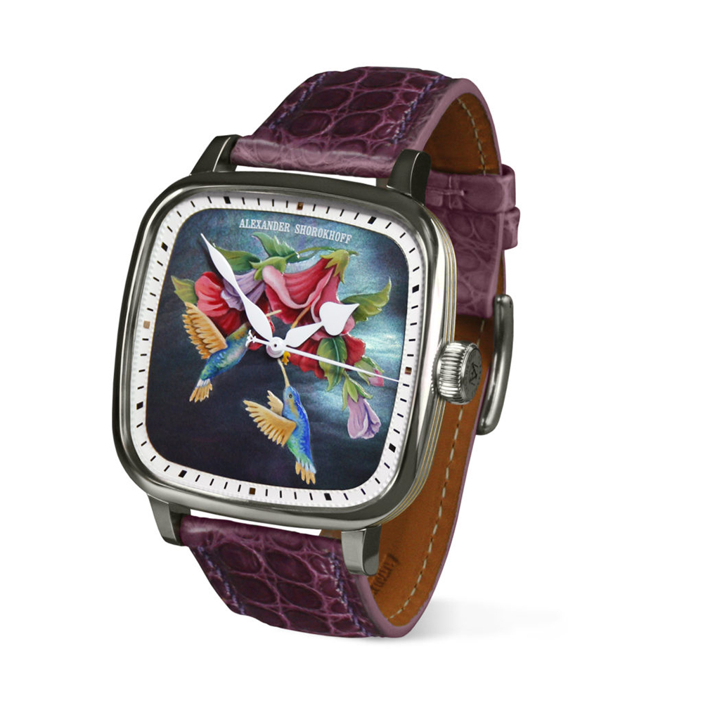 The Alexander Shorokhoff Colibri watch is delivered in a black lacquered wooden case
