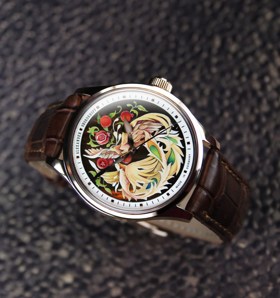 The Alexander Shorokhoff Fairytale watch is delivered in a black lacquered wooden case