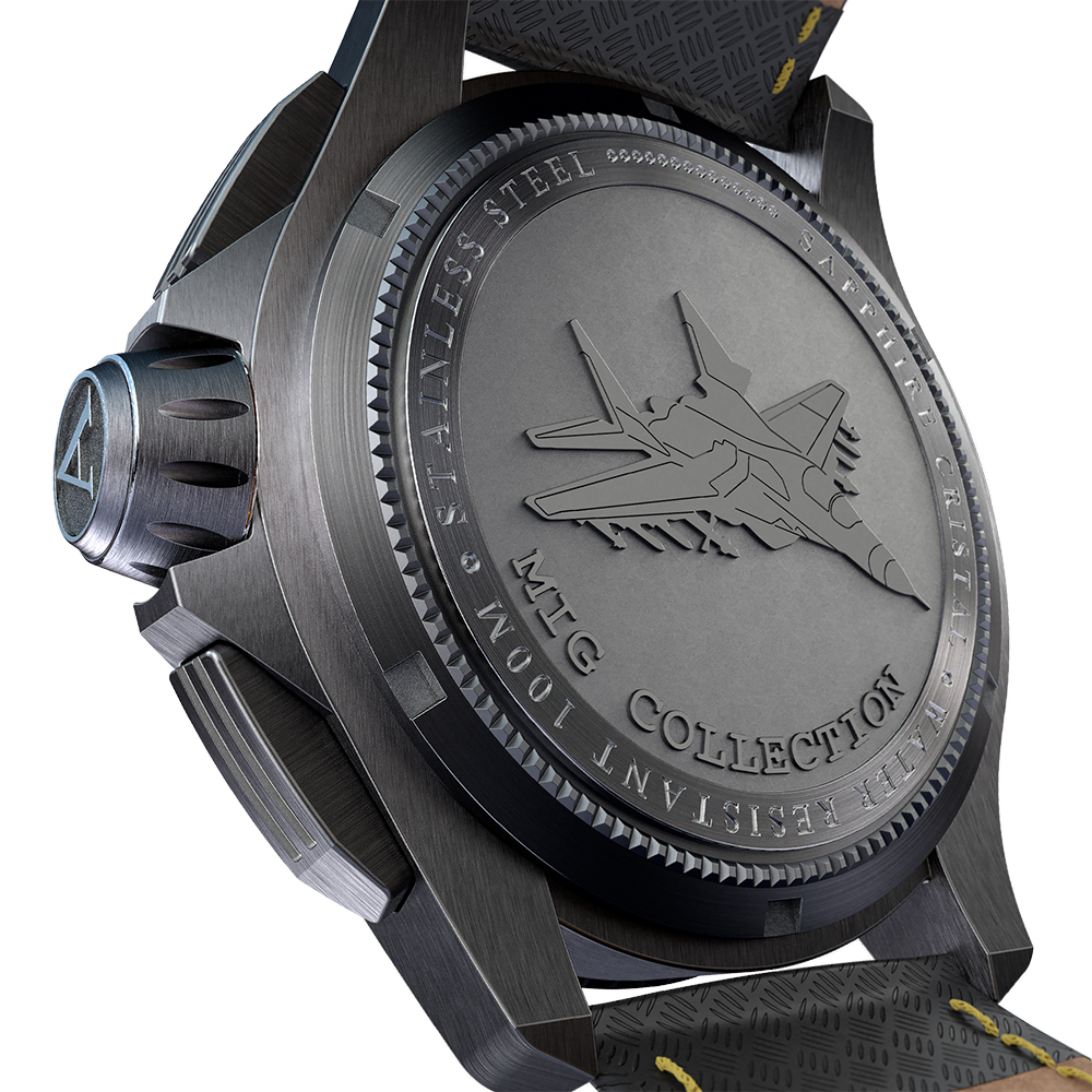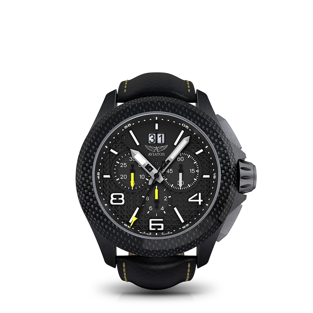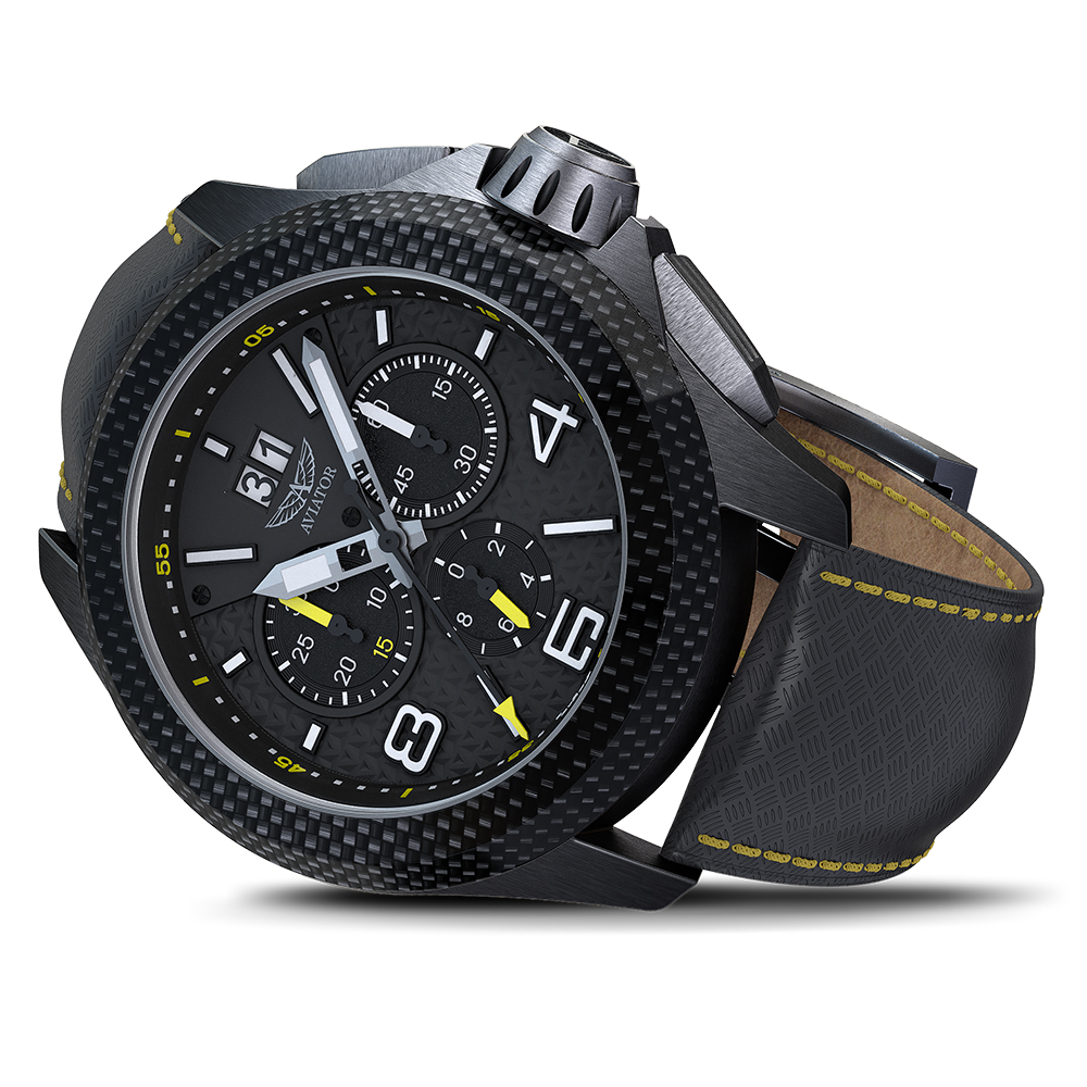 CASE: 45 mm, Stainless Steel black coated case with carbon fiber on the bezel