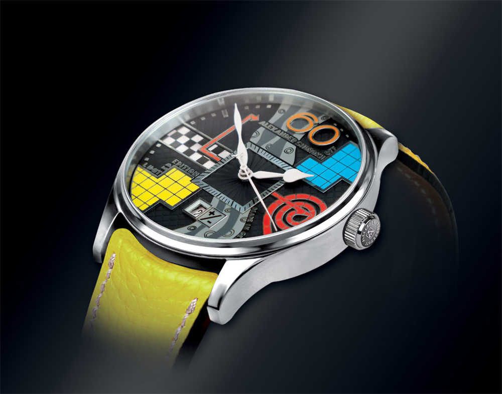 The Alexander Shorokhoff Plus Minus watch is delivered in a black lacquered wooden case