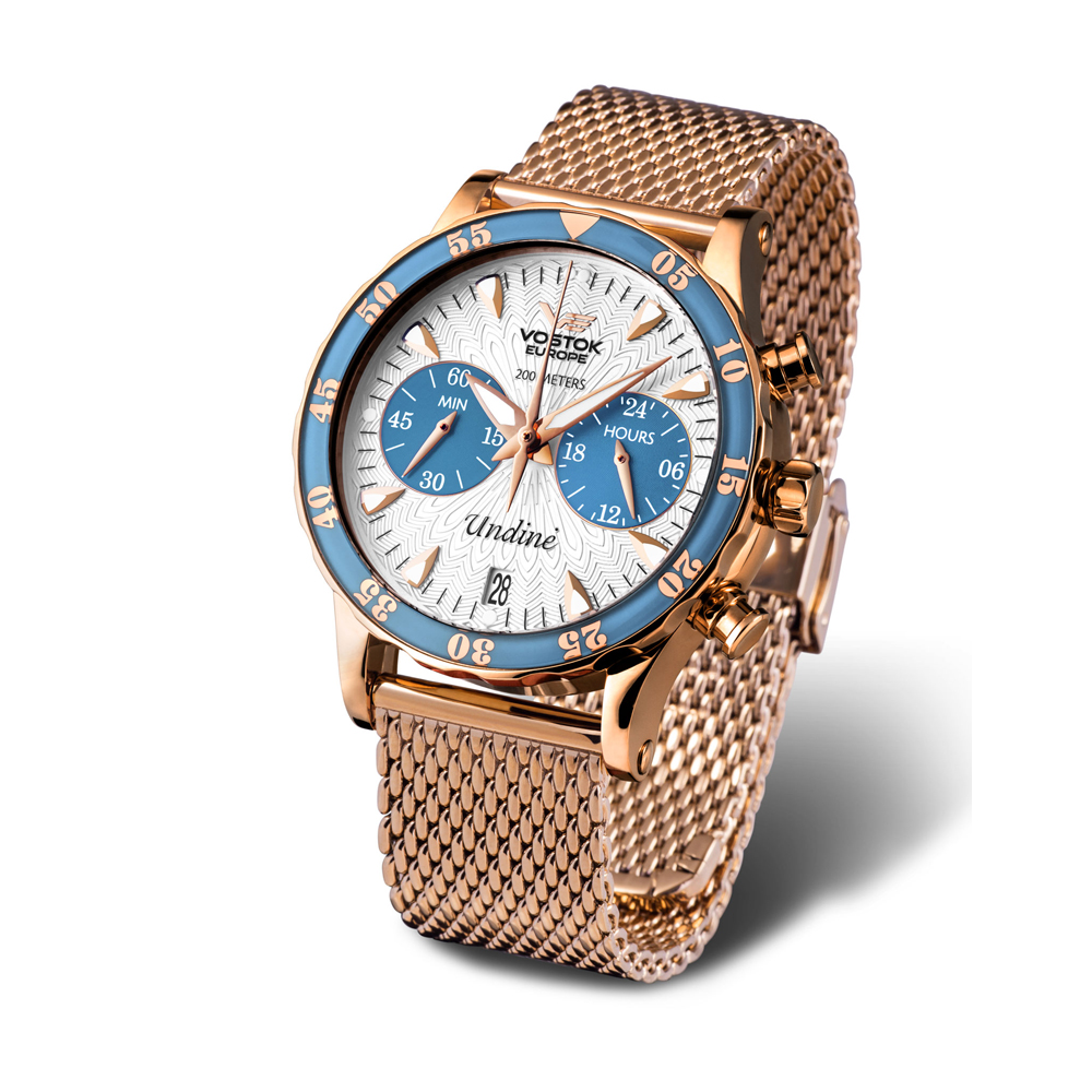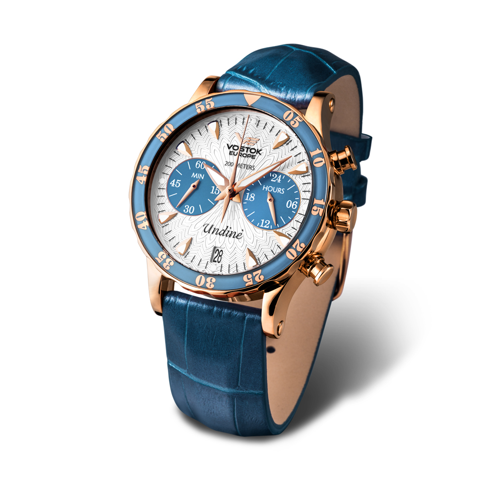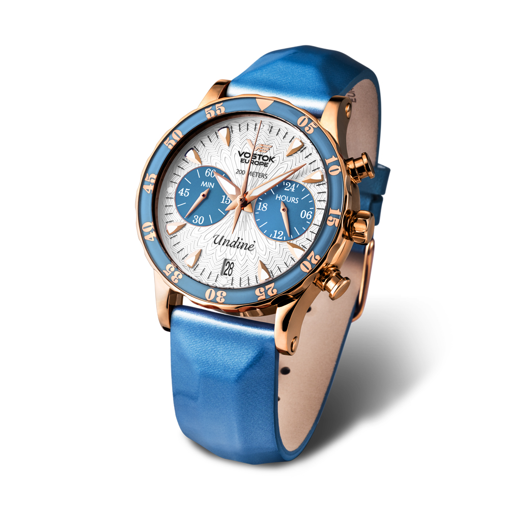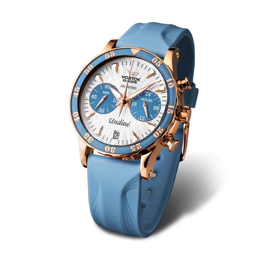 This Vostok-Europe Undine watch can be fitted with stainless steel PVD coated bracelet at additional price