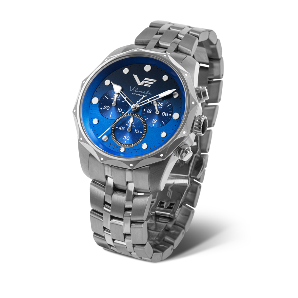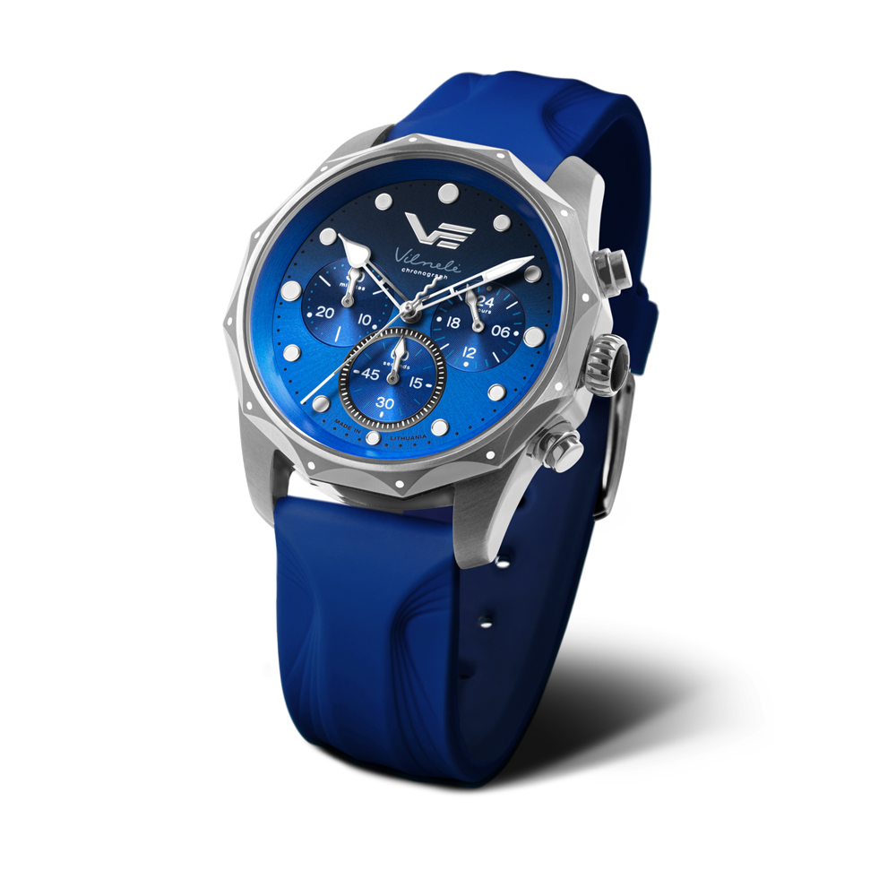 Inspired by the Vilnelė River – a small river that winds through the heart of Vilnius, Lithuania – the Vostok-Europe Vilnele ladies’ chronograph blends natural elegance with modern versatility. The stainless steel case features a wave-shaped bezel, echoing the movement of water, and pairs seamlessly with either the optional integrated steel bracelet or the included leather and silicone straps. Powered by a precise Miyota quartz chronograph movement, the watch features a gradient-painted dial that shifts in tone like light on flowing water