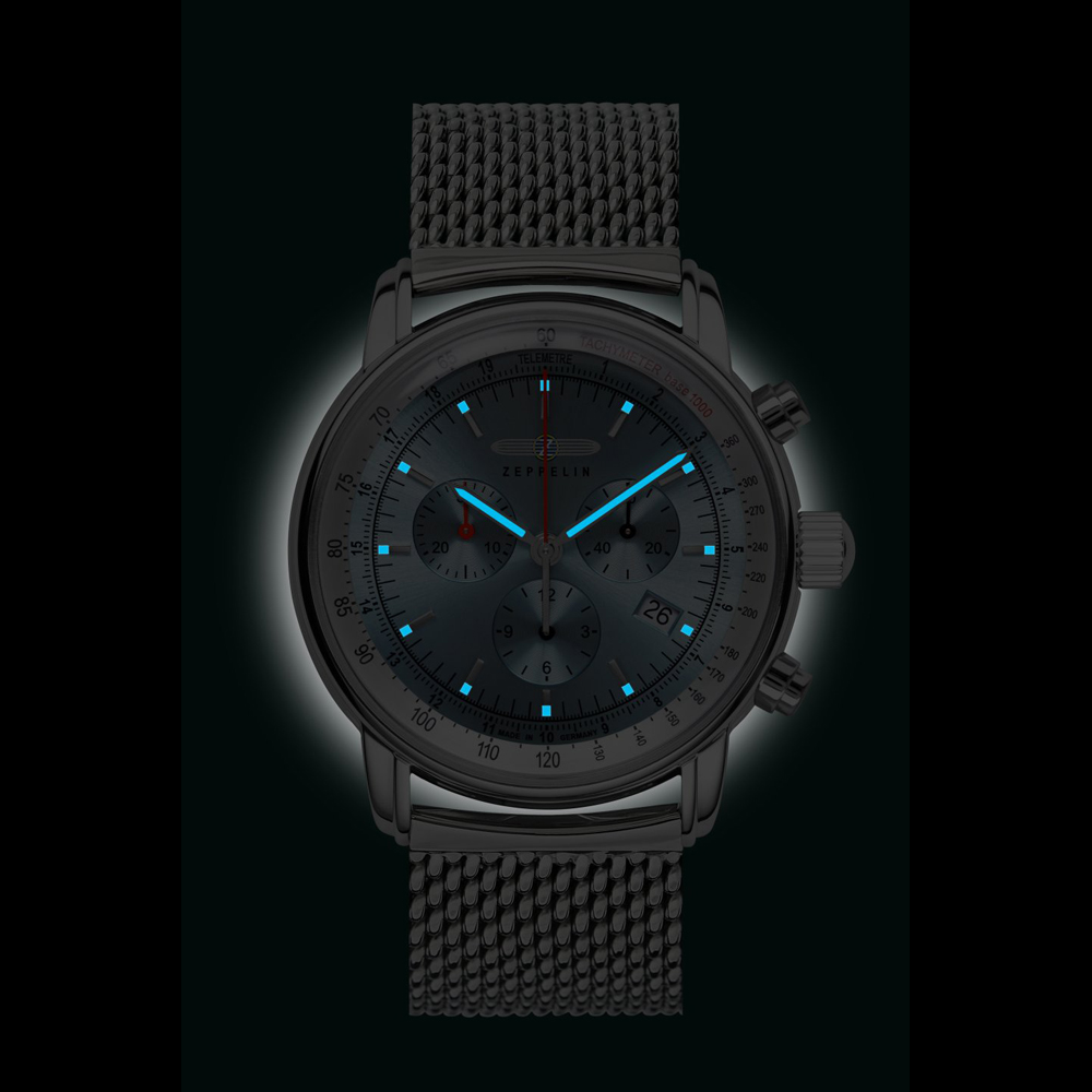 Zeppelin LZ 14 Marine men’s quartz chronograph with metallic bracelet